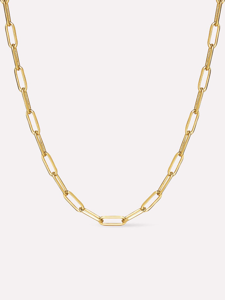 Concebido para ser usado todos os dias, este colar de corrente banhado a ouro 14k combina facilmente com os pingentes que você já possui. Versátil e moderno, este colar de ouro com delicados elos de corrente é ajustável e adapta-se a qualquer decote. Este colar de corrente também está disponível em um modelo mais fino .